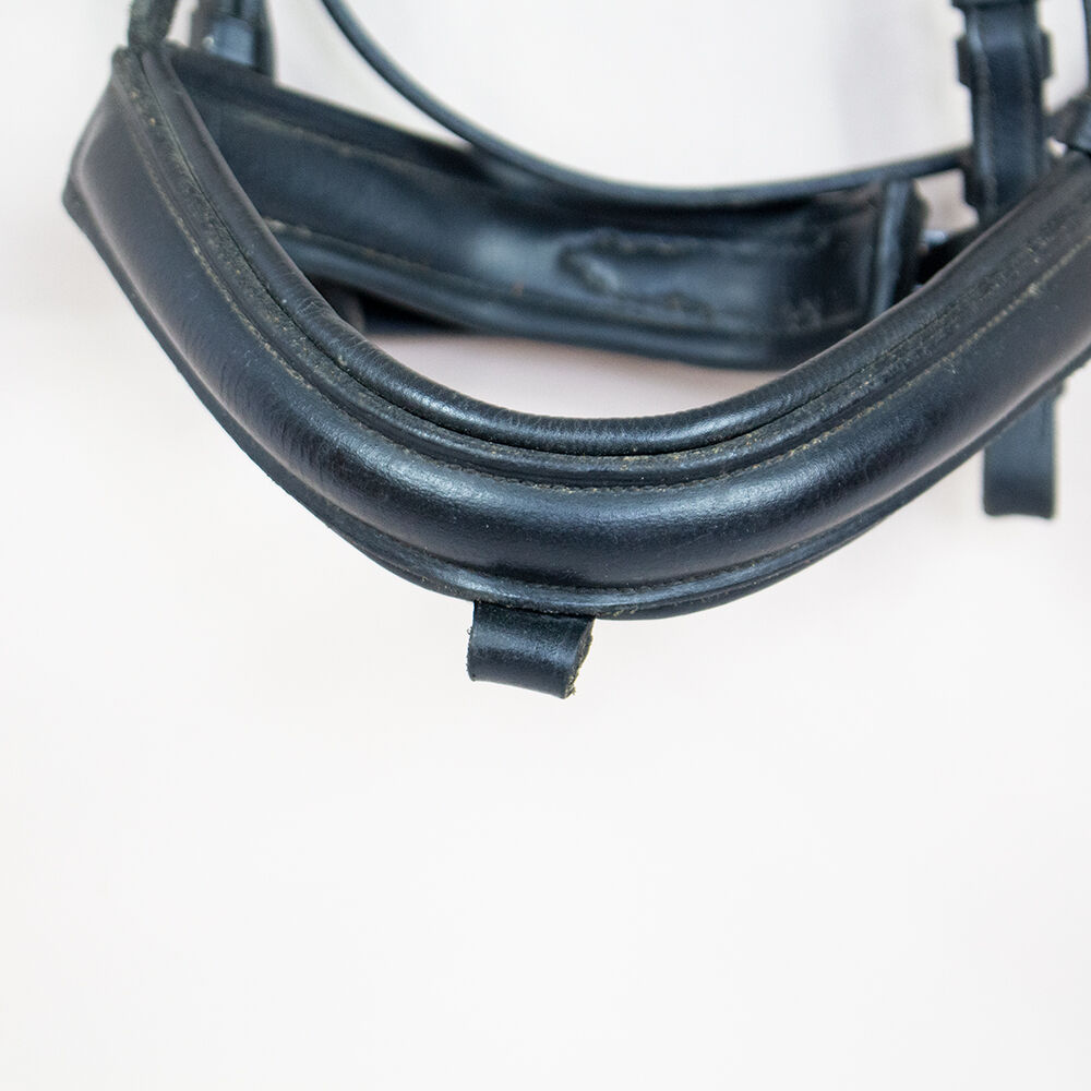 Dieser schöne schwarze Englisch kombinierte Trensenzaum von Wembley ist der perfekte Begleiter im Alltag. Sie hat Größe Vollblut und ist aus Leder gefertigt. Die Trense ist extra weich gearbeitet und hat bspw. ein gepolstertes Genickstück. Außerdem hat sie einen gepolsterten Nasenriemen und ist generell weich unterlegt. Die Schnallen sind silber und die Trense hat einen außergewöhnlichen dreireihigen Stirnriemen mit kleinen weißen Glitzersteinen. Dieser ist ebenfalls von Wembley. Die Trense hat nur leichte Gebrauchsspuren und ist in einem sehr guten Zustand. Im Stirnriemen fehlen leider einige Steine. Dieser kann aber einfach ausgetauscht werden. Zum Angebot des Anbieterslaunch