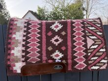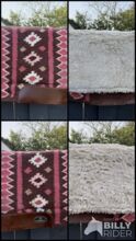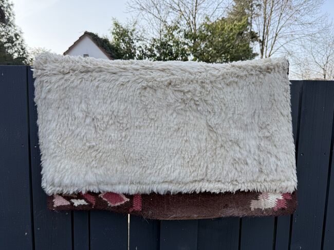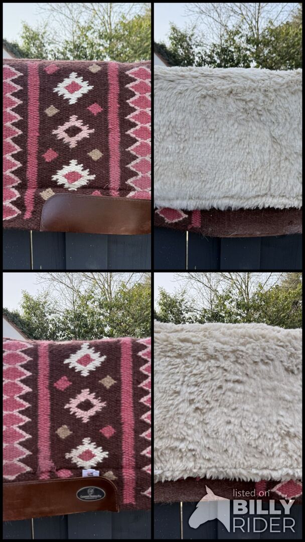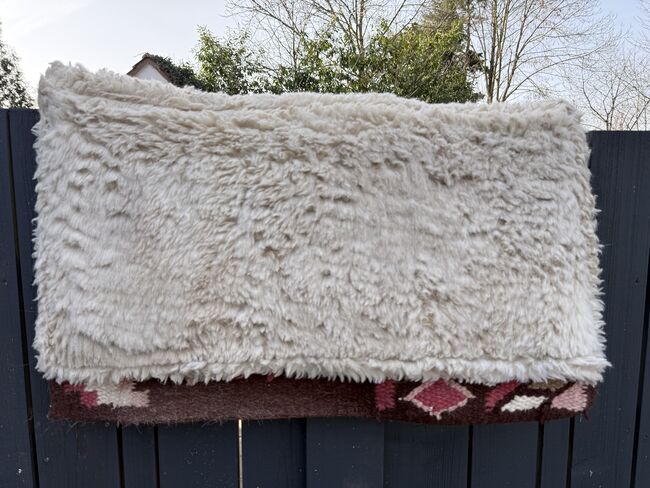 Das Innenleben dieser Pads besteht aus einem hochwertigen, geschäumten Material, das Satteldrücke weitgehend verhindern kann. Einzelne Druckpunkte können deutlich reduziert und das Reitergewicht gleichmässiger verteilt werden. Selbstverständlich besteht die Unterseite aus einem hautsymphatischen WOLL FLIES Die Decke selbst ist natürlich aus Wolle handgewoben.