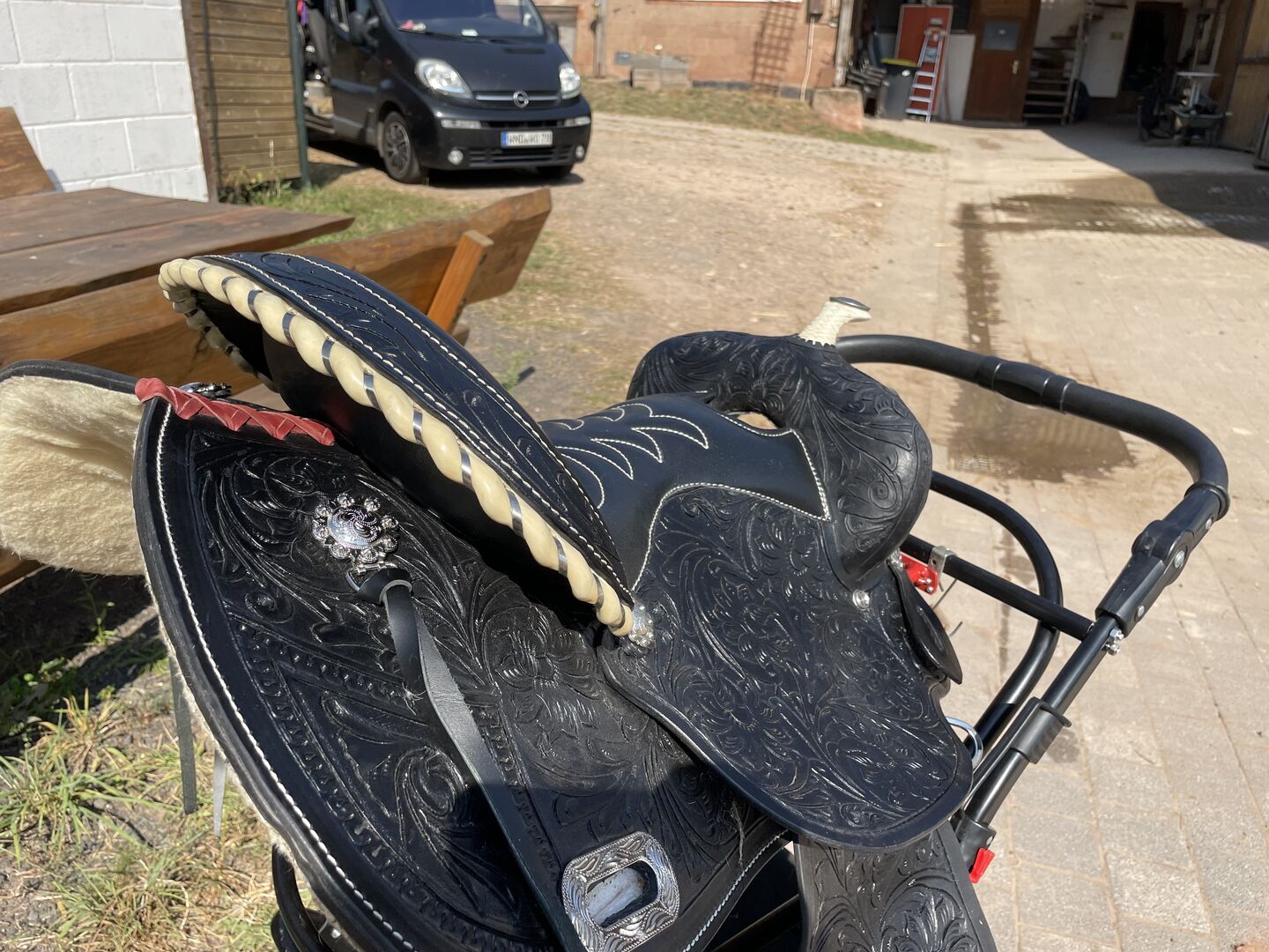 Bei Bedarf hätte ich noch ein hervorragendes Westernpad der Marke Equitex passend in Schwarz-Rot (Neuwert 180€! VB 70€) das ich mit dazu legen könnte. Bilder des Pads auf Anfrage.