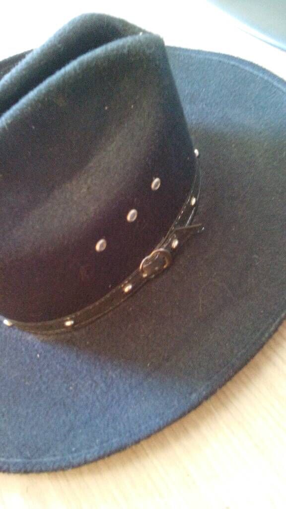 Ich verkaufe meinen fast neuen Westernhut da ich ihn nicht mehr trage und er zu schade ist um nur an der Wand zu hängen. Er wurde einmal getragen und hat einen Fleck in der innen Seite wo aber nichts beeinträchtigt.