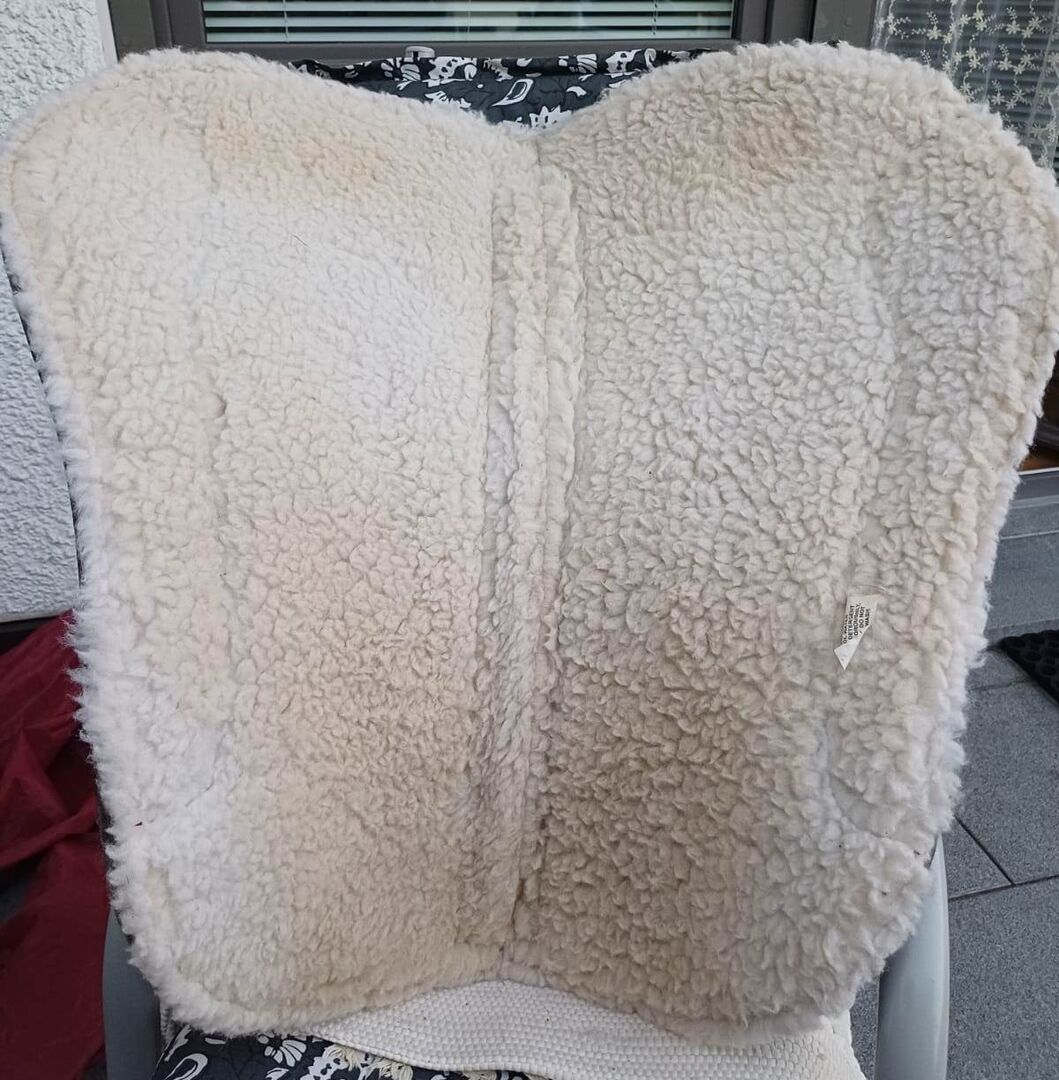 Wenig genutztes Westernpad für kurze Sättel. Oberseite Filz Unterseite Kunstfell. Maße ca 76x76. Es wurde nur 3-4x genutzt, weil das Pferd alt ist und kurz nach dem Kauf nicht mehr geritten wurde. Leichte Gebrauchsspuren s. Foto, ein Fleck rechts geht nicht mehr weg s. Foto. Keine Beschädigungen.