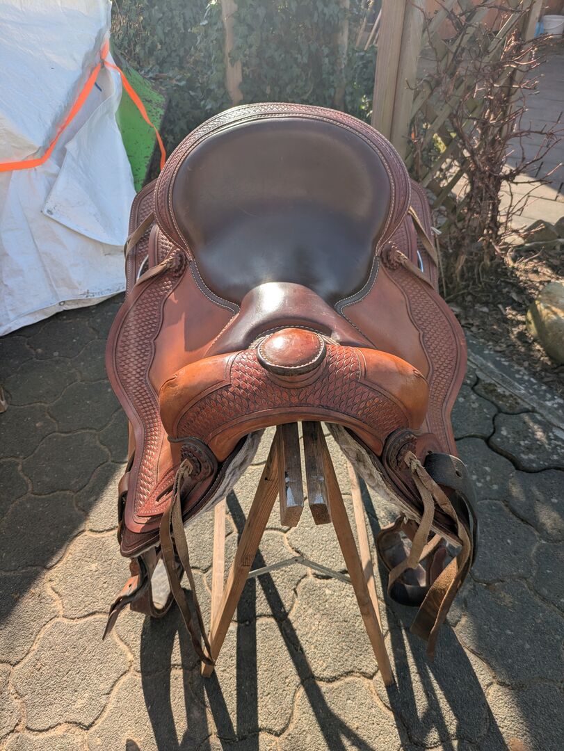 Verkaufe diesen gerne gebrauchten Westernsattel in 16 Zoll. Länge 65 cm andere Maße siehe Bilder. Lag auf einer kräftigen Quarter Pony Stute mit wenig Schwung. Bei Fragen einfach melden. Da Privatverkauf keine Garantie oder Rücknahme. Versand gegen Kostenübernahme möglich.