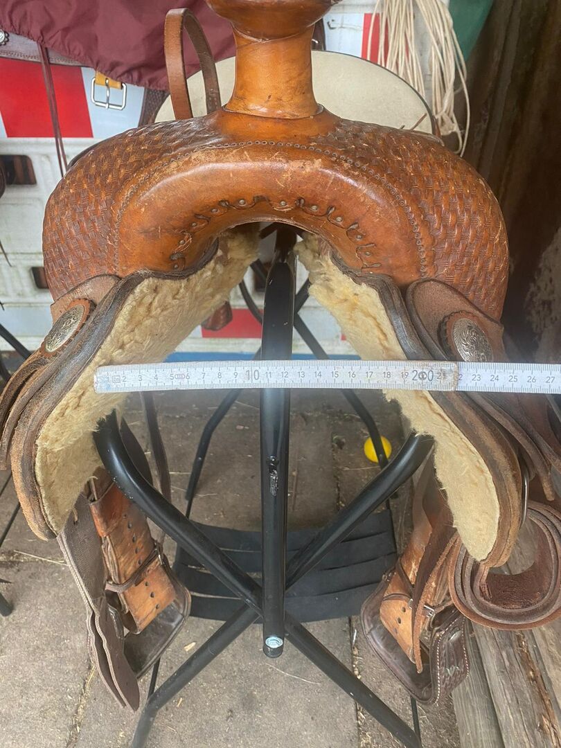 Gebrauchter schicker Westernsattel.. Maße bitte den Bildern entnehmen.. Versand bei Übernahme der Kosten in voraus zahlung möglich.. Sitzfläche 16 zoll..