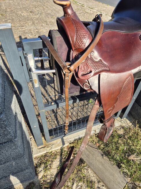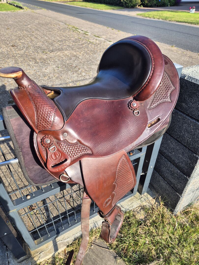Verkaufe meinen Circle L 7580 Westernsattel! Roundskirt , Gesamtlänge ca 65 cm ! Andere Maße sind auf den Fotos zu erkennen! Der Sattel ist top in Ordnung, immer gepflegt und hing ausschließlich im Haus ! Der Sattel wird abgegeben mit Pad , Vorderzeug und Sattelgurt ! Gegen Aufpreis von 25 Euro kann der Sattel auch verschickt werden !