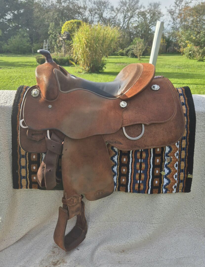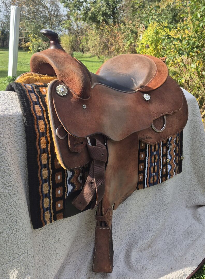 Verkaufe neuwertigen Westernsattel, Baumgröße 7,5 (siehe auch Nummer in Bild). Dieser Sattel wurde von der Circle L Ranch gefertigt, einem der besten Sattelanbieter Deutschlands. Auf Grund seiner Rauhlederausstattung bietet der Sattel für den Reiter/-in einen hervorragenden Halt in allen Situationen. Zusätzlich bietet der Gelsitz einen super Sitzkomfort.