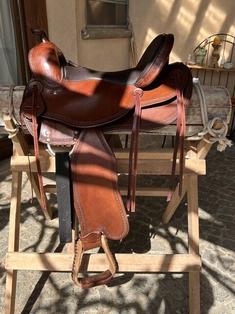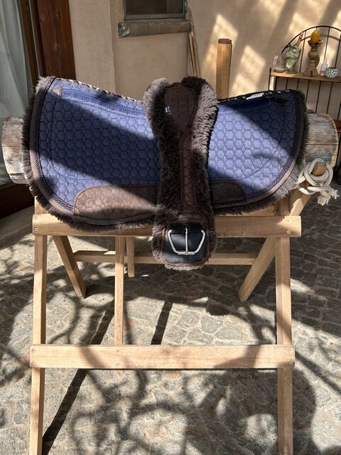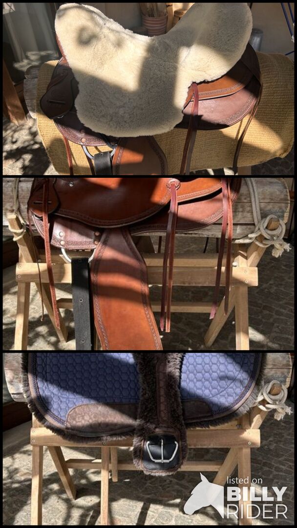 Baumloser, leichter Westernsattel, Sattelpolster individuell verstellbar, mit gepflegtem Zuberhör : Mattes Lammfell Westernpad mit Einschubtaschen für zus. Polsterung, Mattes Lammfellsattelgurt (80cm)
