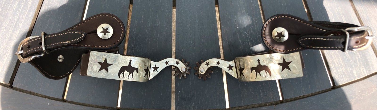 Zum Verkauf stehen hier diese schönen hochwertigen Sporen aus schwerem, antikbraunem Eisen. Aufwändig gravierte German Silver Auflagen, mildes 10er Rad.
