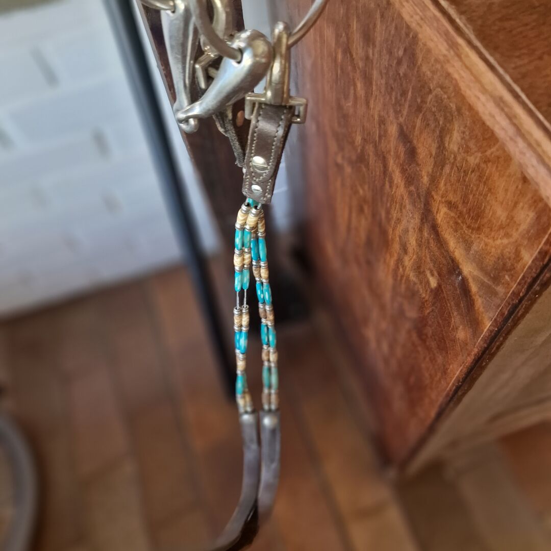 Biete hier eine wunderschöne westerntrense mit tollen türkiesen Perlen und punzierungen an.die passenden Splitrains sind dabei.