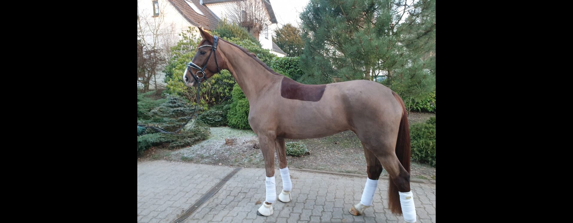 Mit ihrem modernen, glänzenden Dunkelfuchs-Fell und dem außergewöhnlich schönen Kopf, der durch eine weiße Blesse ergänzt wird, zieht sie alle Blicke auf sich. Ihr harmonisches und elegantes Exterieur macht sie zu einer wahren Augenweide.