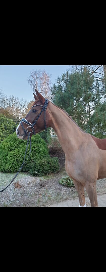 Zum Verkauf steht eine bezaubernde westfälische Dunkelfuchs-Stute, die nicht nur durch ihr äußeres Erscheinungsbild, sondern auch durch ihren Charakter besticht. Diese junge Dame ist gerade erst 5 Jahre alt und stammt aus einer hervorragenden Linie: De Niro Gold x Sandro Hit x Don Gregory.