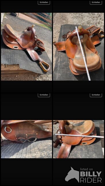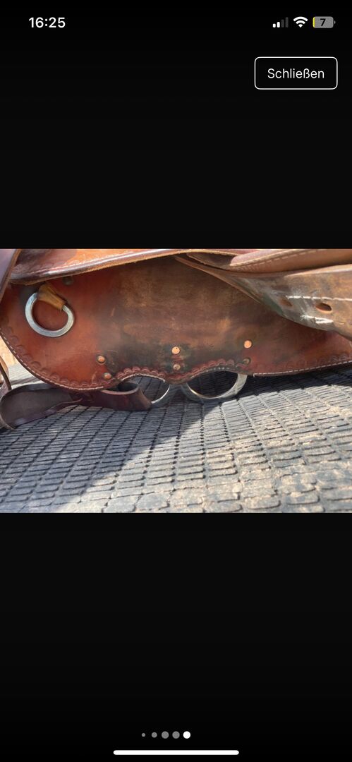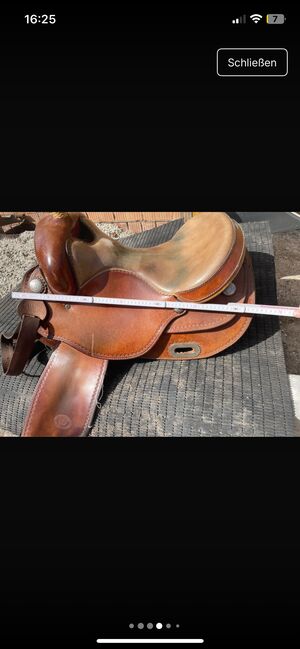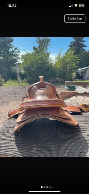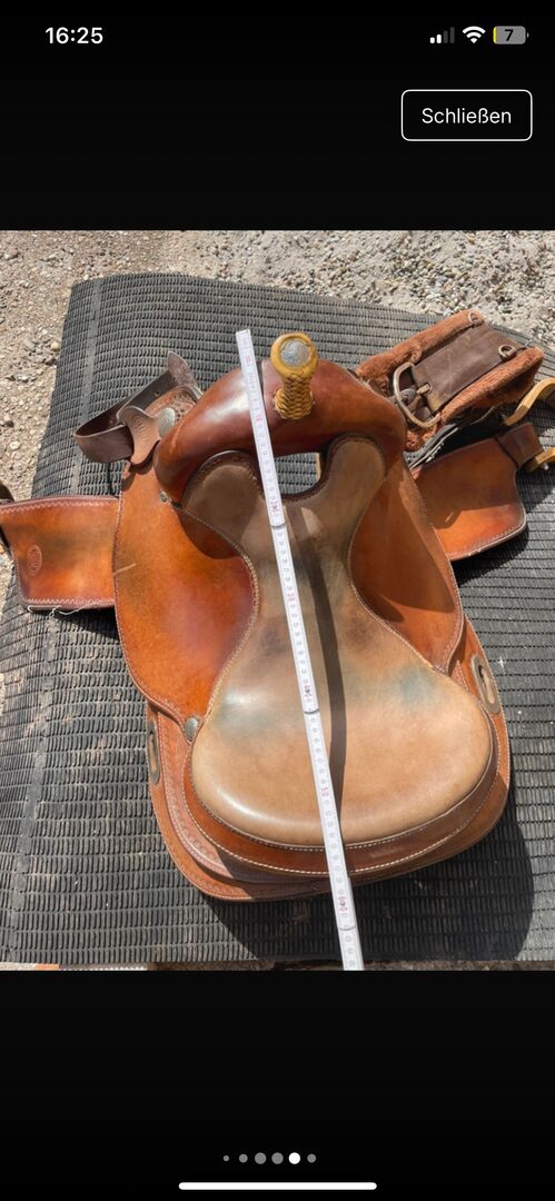 Westernsattel, da er meinem Haflinger Wallach leider nicht mehr passt. Der Sattel ist in einem guten Zustand. Leichte Gebrauchsspuren sind zu erkennen, siehe Bilder. Er wurde immer gut gepflegt und sieht such noch sehr gut aus. Der Sattel ist eher breit geschnitten und ich war immer sehr zufrieden, was auch mein Pferd zeigte.