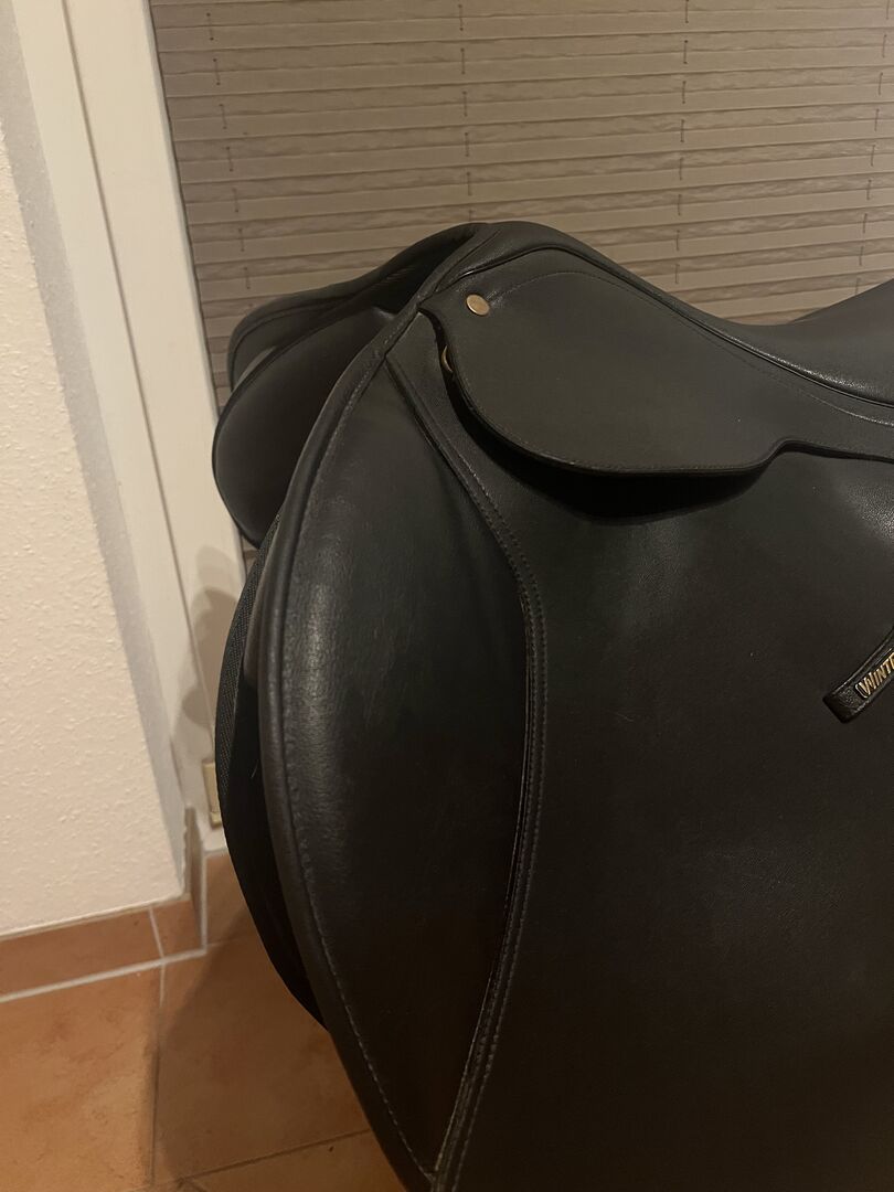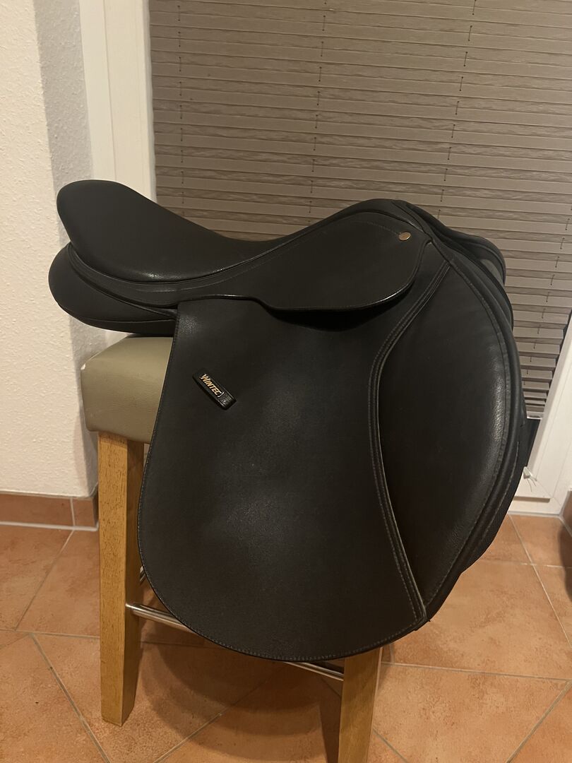 Ich biete einen Wintec Springsattel im sehr guten Zustand an. 17,5 Zoll. Austauschbares Kopfeisen. Es ist das rote drin. Ich habe ihn selber gebraucht gekauft, er passt aber nicht so richtig. Eine kleine Macke hinten (siehe auch Bild)