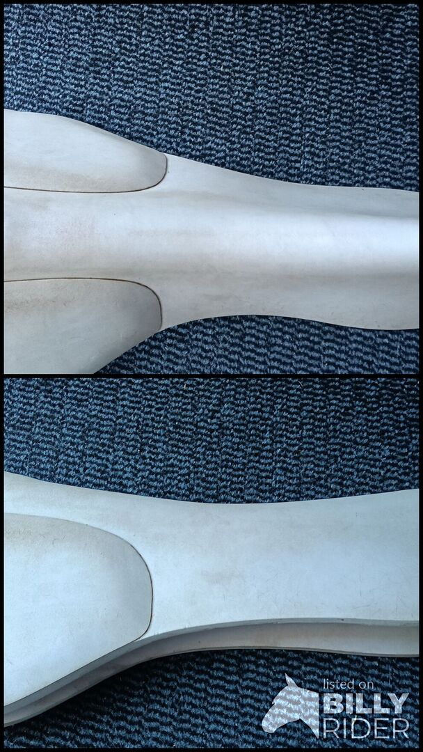 Das Pad ist weiß und passt problemlos unter jeden Sattel. Dank der synthetischen Vorderkeile hilft es, den Sattel auszubalancieren und den Druck auf den Widerrist des Pferdes zu reduzieren.