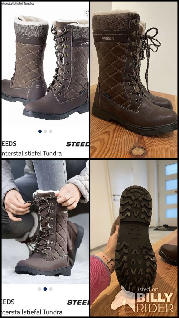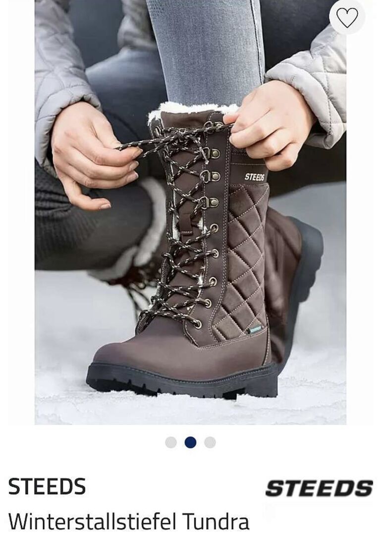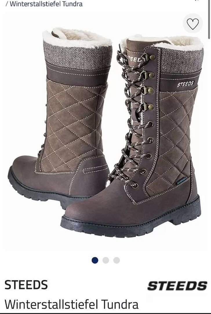 Wasserdichter Winterstallstiefel mit durchgehender Schnürung. Innen mit sehr weichem Teddyfleece (100 % Polyester) gefüttert, das die Füße mollig warm hält. Die eingearbeitete wasserdichte Membran sowie die seitlich vernähte Schuhzunge verhindern ein Eindringen von Schnee oder Wasser. Elegante Optik dank Textileinsatz am Schaftende und auffälligen Kontrastnähten. Die Schnellschnürung ermöglicht ein schnelles An- und Ausziehen. Griffige Profilsohle für besten Halt auch auf vereisten Oberflächen. Obermaterial: Polyurethan.