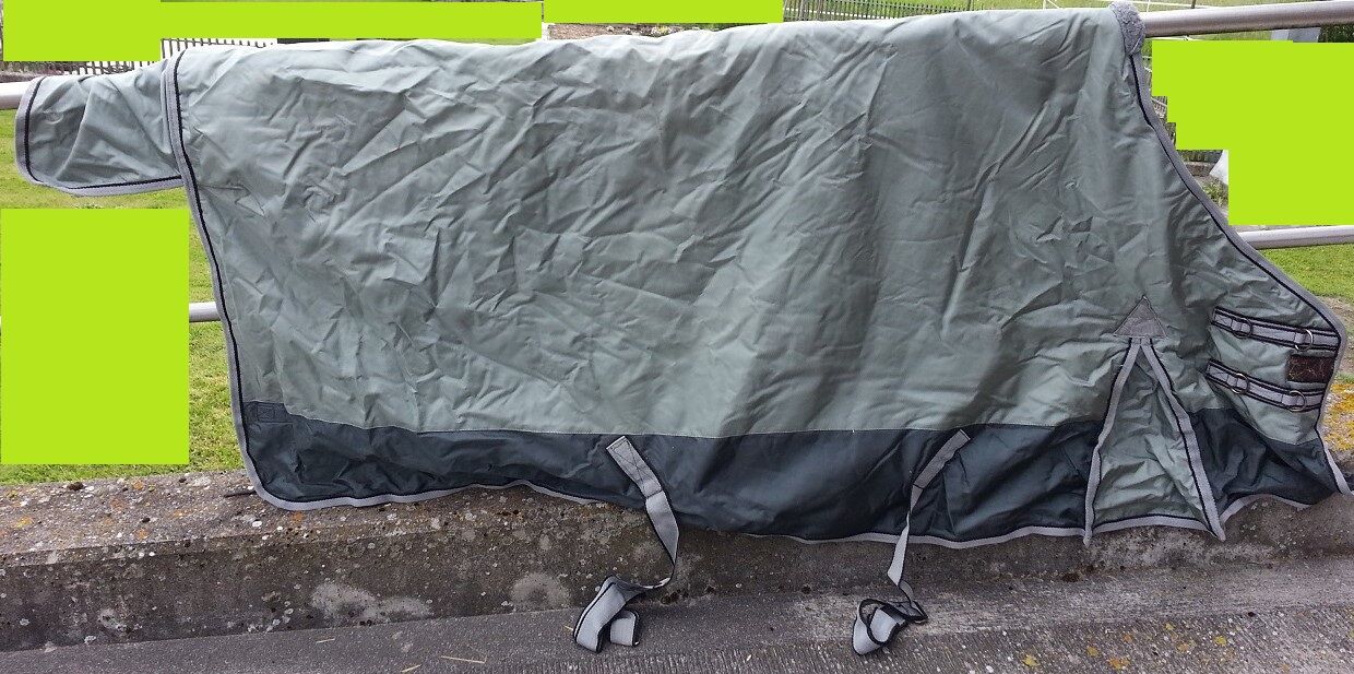 Winterweidedecke Fütterung ca 300gr wenig gebraucht Rückenlänge 155cm sehr starkes, wasserfestes Aussenmaterial ganz kleiner Schaden innen am Futter (siehe Foto)