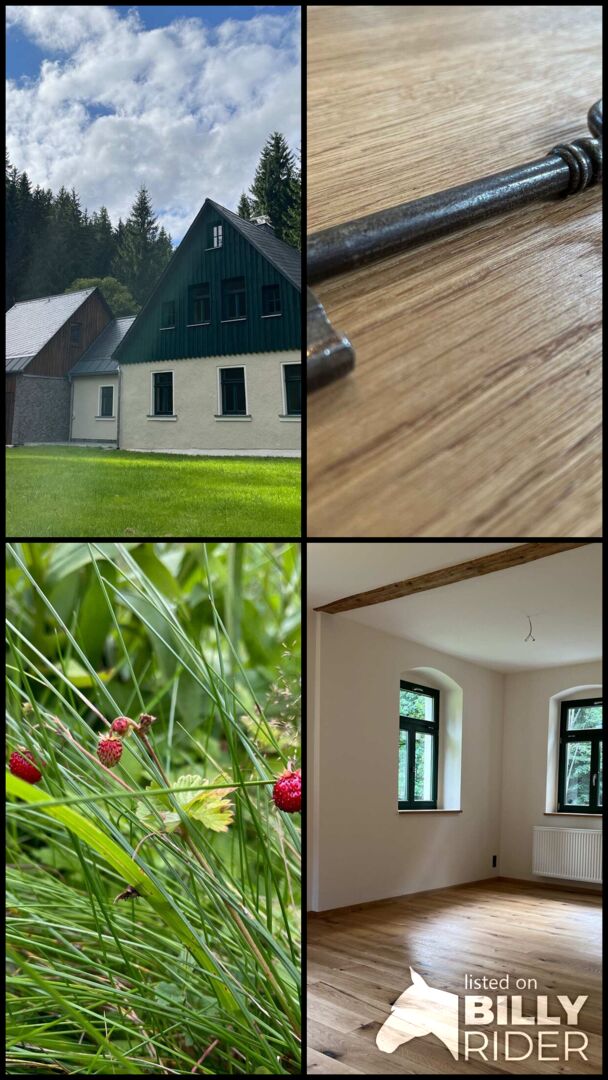 Das historisch anmutende Bauernhaus Ensemble vereint modernes, komfortables Wohnen mit dem ganz besonderen Luxus, das eigene Pferd direkt auf dem eigenen Grundstück zu wissen. Wohn- und Stallgebäude wurden von 2007 bis 2009 von Grund auf neu aufgebaut. Der Gebäudekomplex steht daher nicht unter Denkmalschutz. In 2025 erfolgte eine umfassende Sanierung der Liegenschaft. Die gesamte Immobilie ist innen und außen bezugsfertig renoviert. Auf einem Grundstück von 9.980 m² erfüllt diese Immobilie den Traum vieler Pferdefreunde: Leben mit Tieren, umgeben von Natur und gleichzeitig in einem gemütlichen Zuhause mit durchdachter Ausstattung. Das Wohnhaus hat eine Wohnfläche von ca. 193 m² inklusive Terrasse. Hinzu kommt eine Teilunterkellerung von 15m² und ein ca. 40m² großer Spitzboden. Das Haus überzeugt mit einer familienfreundlichen Raumaufteilung. Im Erdgeschoß befinden sich Wohnküche, Wohnzimmer, Arbeits- oder Schlafzimmer, Familienbad und Hauswirtschaftsraum. Im Wohnzimmer und in der Küche kann ein Festbrennstoff Ofen die klassische Gasheizung kuschelig ergänzen. Im Dachgeschoß liegen 3 sehr schöne Schlafzimmer, davon haben 2 Zimmer einen zusätzlichen Ankleideraum mit separatem WC und Waschtisch. Ein echtes Highlight dieser Immobilie ist jedoch das 2. Gebäude – speziell für Pferdeliebhaber. Das vollgedämmte Gebäude ist der perfekte Pferdestall. Es ermöglicht die Haltung Ihrer Tiere in unmittelbarer Nähe zum Wohnhaus. Stallarbeit, Füttern und Versorgen werden zum Teil des persönlichen Lebensgefühls. Genauso wie das Schnauben der Pferde aus dem Stall und die Geranientöpfe auf der Fensterbank. Das Stallgebäude hat eine Nutzfläche von 75m². Im Erdgeschoss befindet sich ein 35m² großer Raum für Ihre Pferde. Außerdem ein separater Futterraum. Das Obergeschoss ist voll ausgebaut und mit 40m² sowohl zu Wohn- als auch zu Lagerzwecken nutzbar. Für die kleine Pause zwischendurch ist hier eine Sauna integriert. Ein massives Doppelcarport, Gerätehaus und ein granitgepflasterter Hof ergänzen den Wohnkomfort auf dem Grundstück. Das Grundstück hat eine eigene BioKläranlage, unterirdischen Gastank und eine eigene Quelle. Wiesen zur Weide sind gleich im Anschluß an die Gebäude. Der überwiegende Teil der Grundstücksfläche ist Waldbesitz. Gelände- und Wanderritte in der schönen Umgebung von Eibenstock mit seinem ausgedehnten Reitwegenetz sind ab der Haustür möglich. Das Haus hat einen Anschluß an die öffentliche Straße. ÖPNV ist fußläufig erreichbar. Die Immobilie befindet sich in Eibenstock im Bundesland Sachsen. Eibenstock ist eine mittlere Kleinstadt mit sehr guter Infrastruktur. Kindertagesstätten, Grund- und Oberschule sowie Supermärkte, Apotheken und medizinische Versorgung sind in wenigen Minuten mit dem Fahrzeug oder dem ÖPNV erreichbar. Eibenstock ist ein touristisch ausgeprägter Ort, verfügt aber auch über kleinere industrielle Branchen. Pferde- und Reitsportbegeisterte finden in Eibenstock schnell Anschluß, denn der Ort wird vom Leben mit Pferd geprägt. Eine Vielzahl der Einwohner hält selbst Pferde. Im Reitstall Eibenstock befindet sich das Reit und Sporthotel mit der größten Reithalle in Leimbinderbauweise in Deutschland. Die Reithalle mit einem Hufschlag von 20m x 80m kann in zwei einfache Dressurvierecke mit 20m x 40m geteilt werden. Der angrenzende Stall mit einer Länge von 90m x11m bietet mit 40 Boxen und einigen Nebenräumen ausreichend Platz für Pferde. Einstellboxen, Offenstall, Reitunterricht, Reitclub, Reiturlaub uvm. wird angeboten. Die nächstgrößeren Städte Schwarzenberg, Schneeberg und Aue sind in 20 min bequem erreichbar. Chemnitz und Hof liegen 1 Fahrtstunde entfernt. Im Zentrum von Leipzig, Dresden und Prag sind Sie in 2 Stunden mit dem PKW. Zur Bundesdeutschen Hauptstadt Berlin beträgt die Entfernung etwa 5 Stunden. Verlieben Sie sich in dieses Haus auf dem Land. Erfüllen Sie sich mit dieser besonderen Immobilie Ihren Lebenstraum! Rückfragen / weitere Fragen jederzeit gern Online Expose´: kann abgerufen werden.