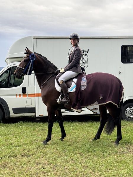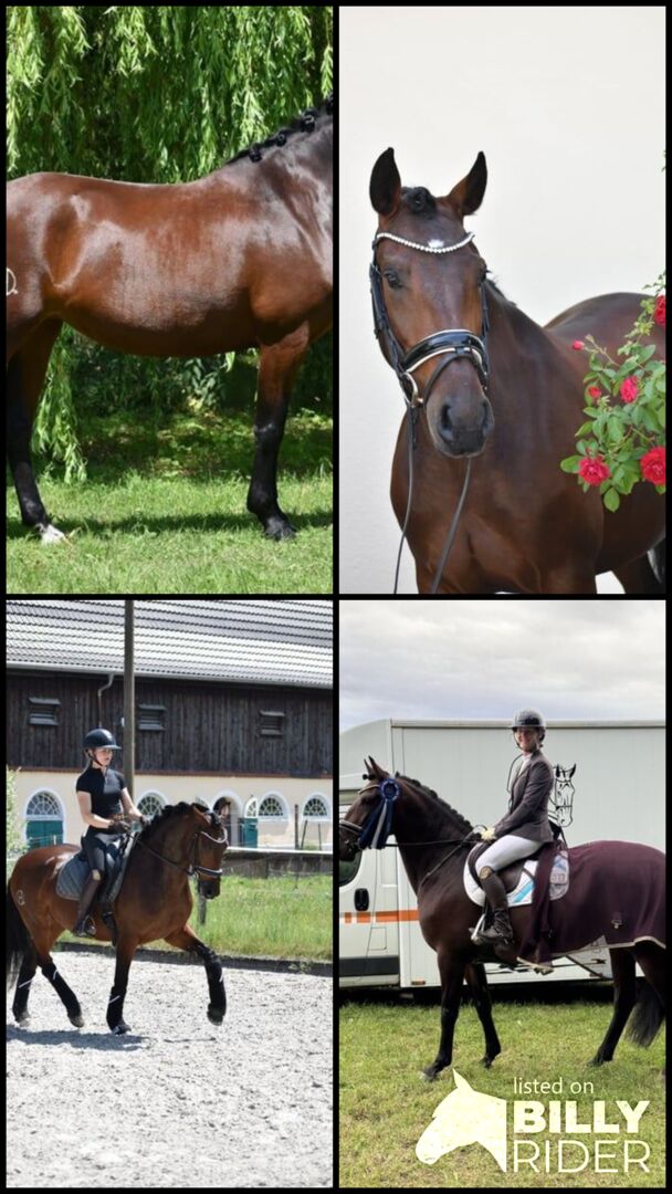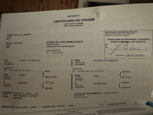 Rosa da Hermida ist eine Lusitanostute wie aus dem Bilderbuch. Wunderschön, abgedreht - kugelrund gibt sie dem Reiter mit ihren erst 5 Jahren bereits ein fantastisches Reitgefühl. Durch ihren berühmten Grossvater „Rubi“ sicherlich mit drei hervorragenden Grundgangarten ausgestattet, lässt Rosa jedes Reiterherz höher schlagen. Sie ist sehr weich zu sitzen und leicht in der Hand. Sie wurde schonend angeritten und wird aktuell gefühlvoll vielseitig ausgebildet. So geht sie ins Gelände, macht Freispringen, Springen mit Reiter und zeigt an der Hand bereits ein Talent für Piaff und Passage unter dem Sattel bereits fliegende Wechsel. Auf dem zweiten Video wird Rosa von meiner 11-jährigen Tochter geritten, was ihr tolles Interieur widerspiegelt.