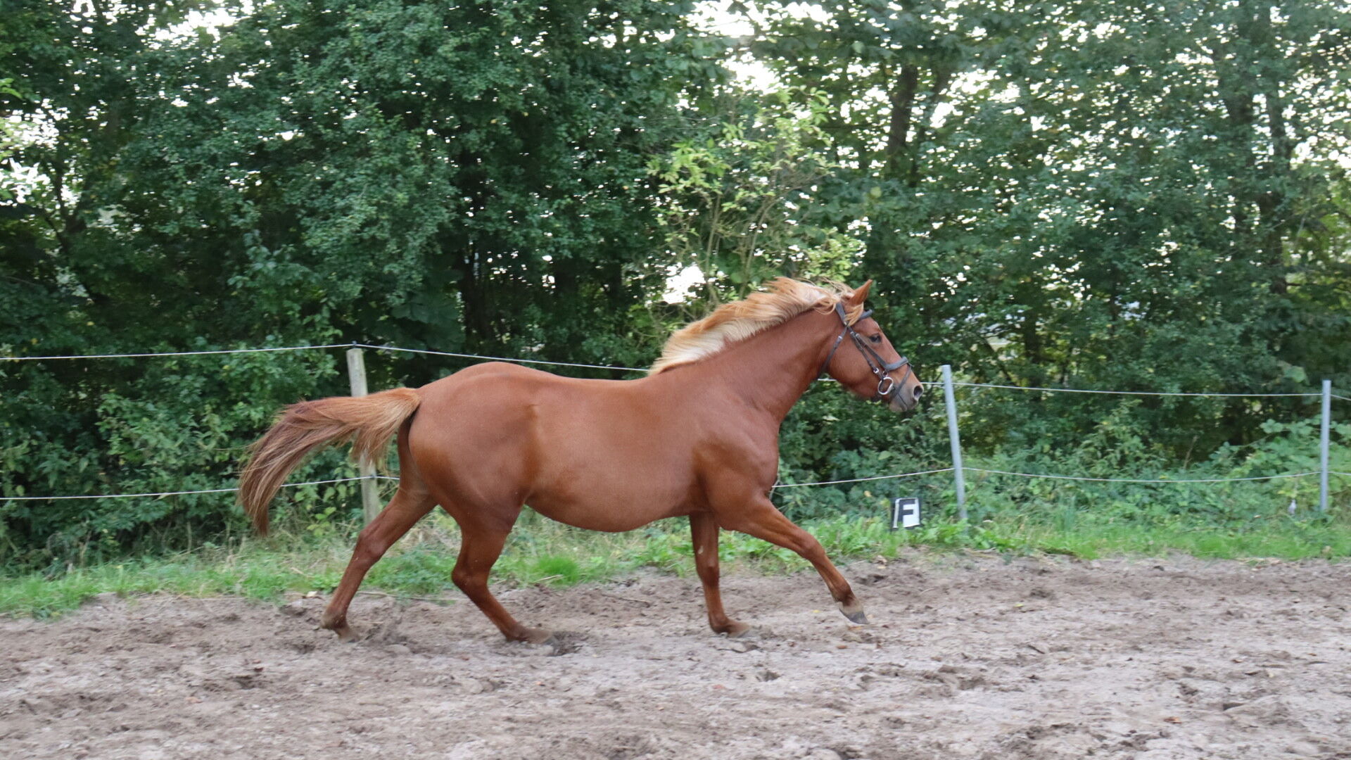 Ich verkaufe aufgrund von Bestandsverkleinerung meine 3 jährige Dt. Reitpony/Anglo Araber Mix Stute. Sie ist in allen drei Grundgangarten geritten, Schmiede- und verladefromm, geländesicher, auch schon am Strand geritten, sehr gut in vorschriftsmäßiger Longenarbeit, auch mit alternierenden Stangen, in der Herde sozial mit allen, Geschlecht egal und Barhufer. In all der Zeit hat sie nie geblockt, gebuckelt oder ähnliches. Sie möchte viel Zuwendung, ist Menschen sehr zugewandt, sozial und freundlich. Im Springen macht sie sich auch gut, kennt auch Ringreiten schon. Der Galopp muss noch etwas herausgearbeitet werden, aktuell neigt sie noch etwas zum "hineinlaufen", sonst geht alles auf den Punkt. Auch Tempowechsel und Rückwärtsrichten macht sie schon brav. Draufsetzen, losreiten, glücklich sein. Als Reittherapeut kann ich sagen, dass sie sich mit ihrem kräftigen Körperbau und ihren starken Nerven auch gut für eine Ausbildung zum Therapiepferd eignen würde. Auch als Wanderreitpferd wäre sie super, aber eigentlich ist sie mit ihrem neugierigen und lieben Wesen für alles geeignet. Da ich ursprünglich nicht vorhatte, sie abzuheben, hab ich mit dem chippen zu lange gewartet, was dazu führte, dass sie einen Ersatzpass hat, aber das ist ja egal, Papiere sind eh nicht verlässlich. Wunderbare, seltene Färbung.
