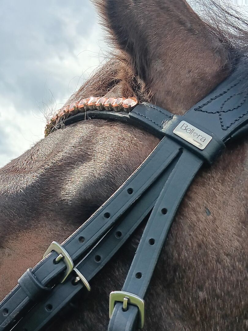 Die Bellora Equestrian Trense ist anatomisch geformt. Am Genickriemen befinden sich weiche Polster, die den ohnehin hohen Tragekomfort zusätzlich erhöhen. Wunderschön, auffällig und die perfekte Wahl für Turniere.🏆