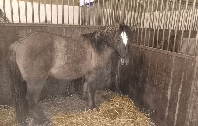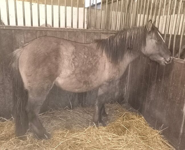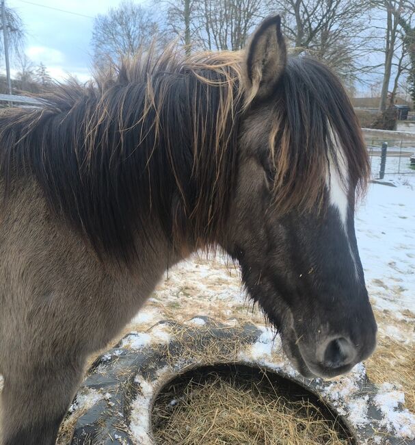 Tinkerfohlen in wunderschöner Sonderfarbe Grisu * 5/ 24 hat Papiere als ICC von der ICS NL sein EM wird um 1,46 -1,48 m, er ist sehr kräftig mit schöner 2-farbiger gesträhnter Mähne und Behang. Sehr gute Gebäude mit toller Oberlinie, dunkles schickes Köpfchen, die Ohren sind schwarz umrandet. Er ist z.Zt. 134m und hinten mächtig überbaut 1,38m (siehe Foto 4), da er gerade wieder wächst. In der tollen Farbe Maus-Falbe, er hat im Sommerfall auch schwarze Zebrastreifen an den Beinen. Grisu ist sehr lieb und neugierig, sehr menschenbezogen, regelmäßig entwurmt, kennt Anhänger fahren, im Gelände spazieren und er bleibt auch schon mal alleine im Stall und geht allein raus, brav beim Hufschmied.