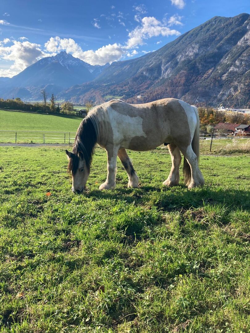 Die letzten 4 Sommer durfte Sipatù auf der Alm verbringen. Er ist herdenverträglich, sucht aktiv Kontakt mit anderen Pferden, ist neugierig und dem Menschen zugewandt.