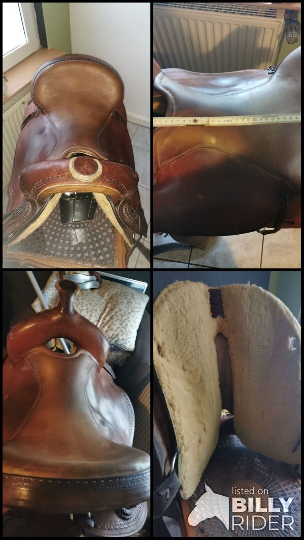Wunderschoener Westernsattel. Leider passt er nicht mehr und daher muss er weiter ziehen. Er hat leider einige Kratzer. Die original Steigbuegel wurden angeknabbert, ich schicke sie gerne mit. Bei Fragen gerne schreiben. Ich bin bereit, den Sattel wenn er nicht passt innerhalb von 14 Tagen zurückzunehmen allerdings trägt der Käufer die Rücksendung und der Sattel muss vorher voll bezahlt sein!!!