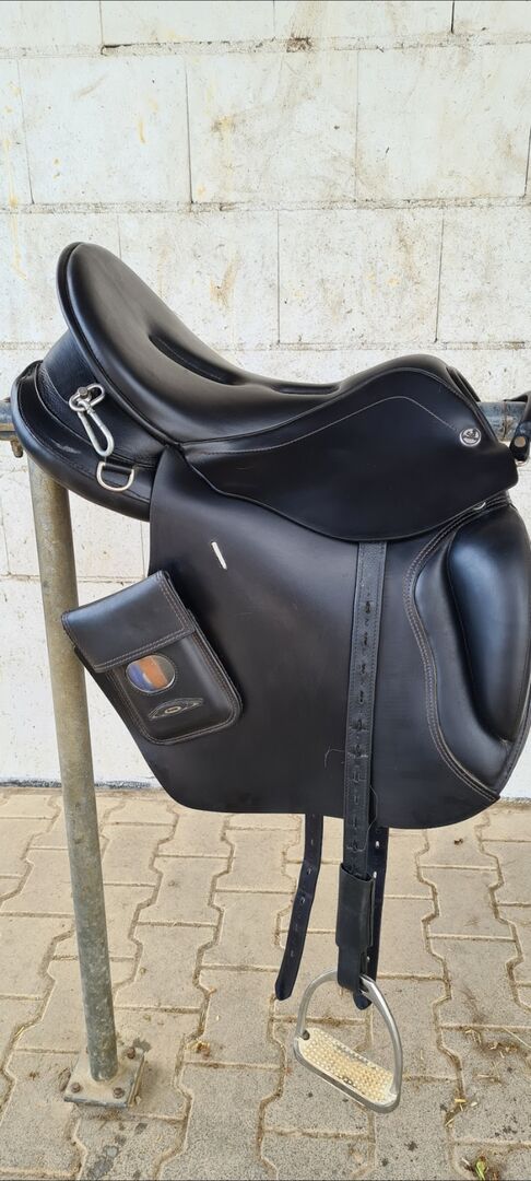 Sehr bequem, weich gepolstert und gut geeignet für lange Ritte, viel Schulter- und Wirbelsäulenfreiheit für das Pferd.