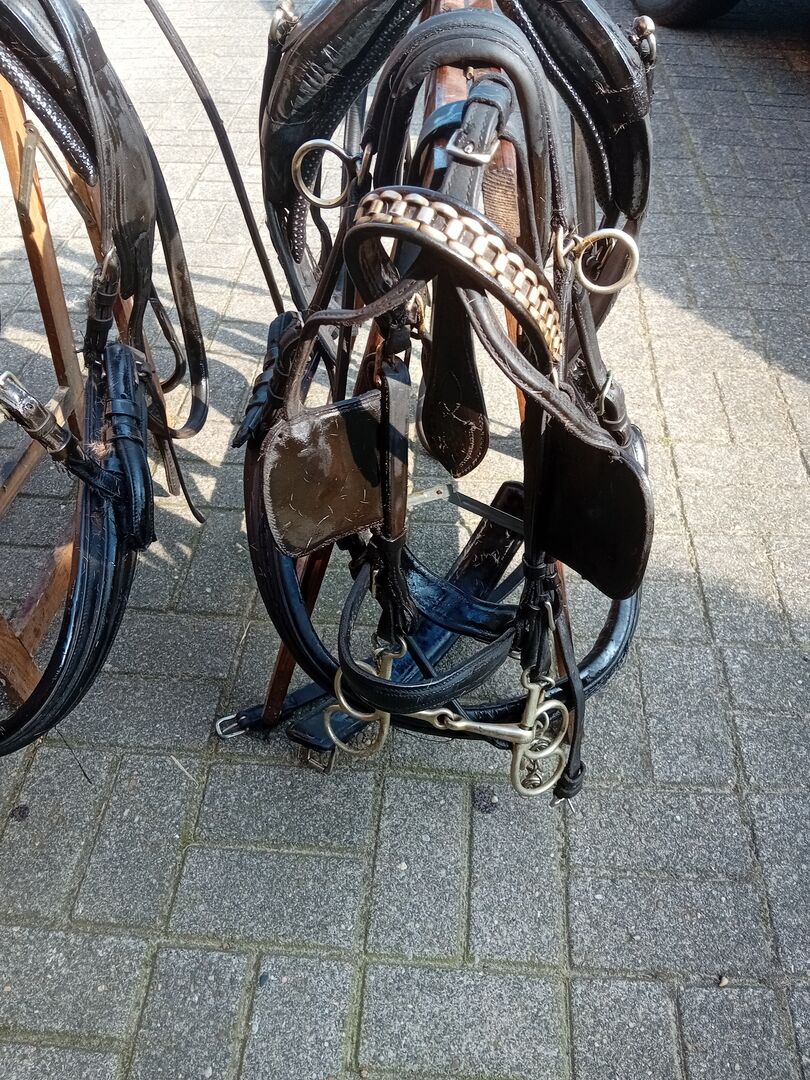 Ich verkaufe hier ein gut erhaltenes Zweispännergeschirr für Ponys. Die Kopfstücke sind mit Scheuklappen und das Gebiss ist eine Postkandarre. Meine Ponys hatten ein Stockmaß von 1.40 m.